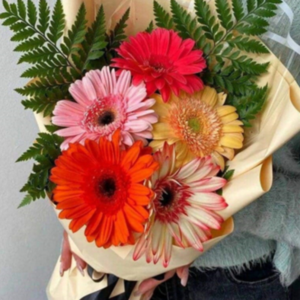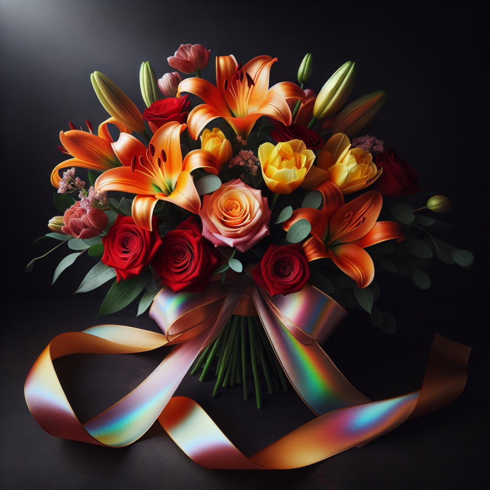 A bright bouquet of yellow chrysanthemums and white roses, tied with a yellow satin ribbon. Perfect for boosting your mood.